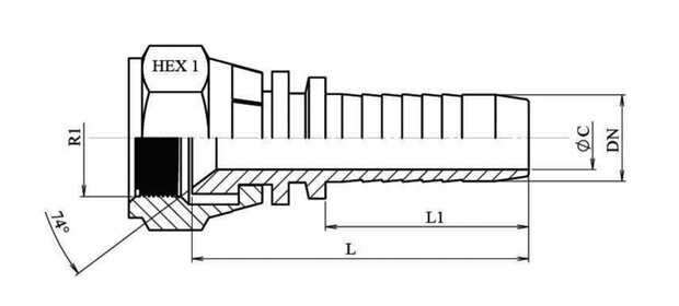 | Afmeting R1 | JIC 9/16" 18h UNF |