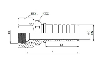 1"1/4 DN perskoppeling JIC 37ยบ 1"5/8 12h met contramoer