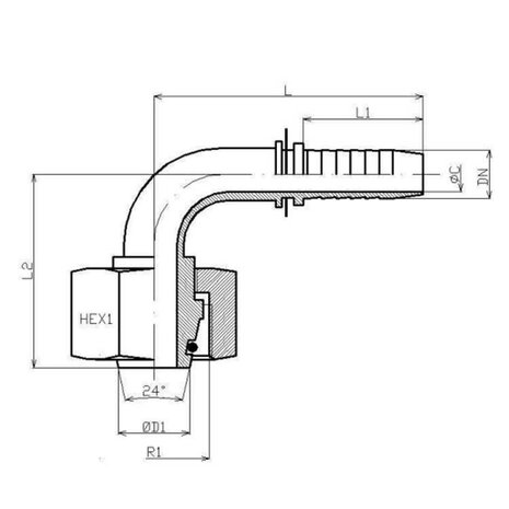 1/4" DN perskoppeling haaks 90° 10L M16x1,5 met o-ring