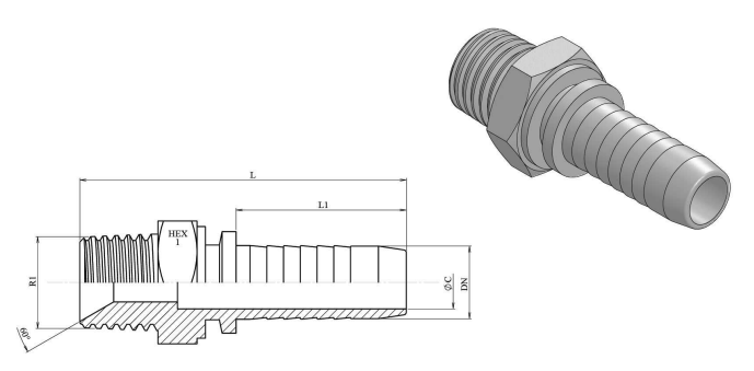 1"1/4 BSPT buitendraad perskoppeling voor 1" (DN25) slang