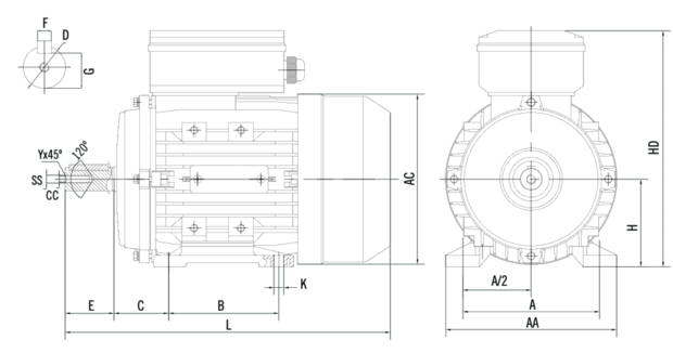 ✓ 1 fase elektromotor 4 kW ✓ IE2 ✓ 230V ✓ B3 voet ✓ B14 flens ✓ 3000 RPM