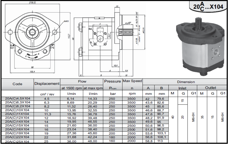✓ Tandwielpomp ✓ 11 cc ✓ Links ✓ 9T spline as ✓ 250 bar