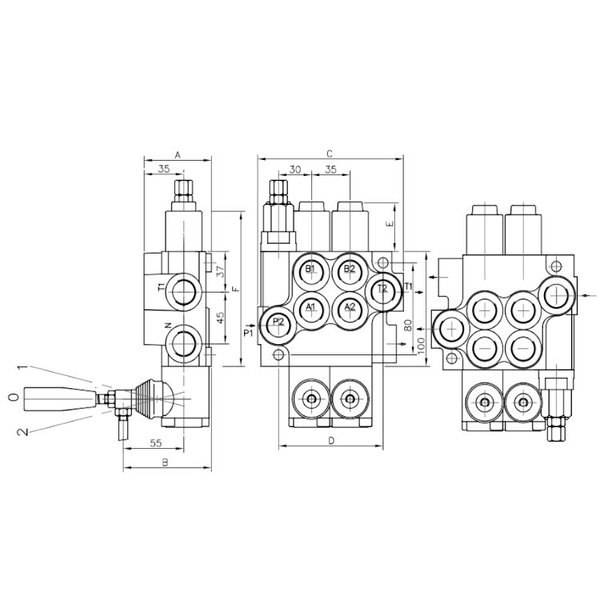 1500mm kabel bediening set voor 1 functie P40 stuurventiel