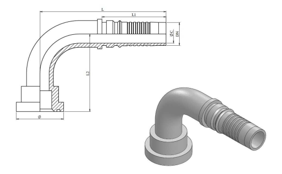 2" DN interlock perskoppeling 90ยบ SAE 79,4 mm 6000 PSI