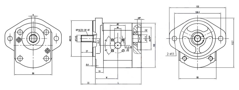 25cc Voorpomp Tandempomp Links met 9T Spline As Pasrand 82,55mm
