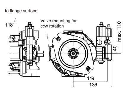 28 DRG variabele plunjerpomp rechts - open circuit - 28cc - 280 bar