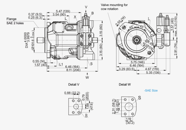 28 DFR variabele plunjerpomp rechts - open circuit - 28cc - 280 bar