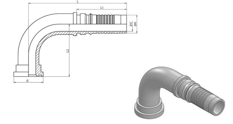 Deze 3/4" DN interlock perskoppeling met een 90ยบ bocht en SAE 38,1 mm flens is ontworpen voor betrouwbare verbindingen in hydraulische systemen tot 3000 PSI. De koppeling van staal zorgt voor een duurzame en lekvrije verbinding, essentieel voor de continuรฏteit van jouw machines.
