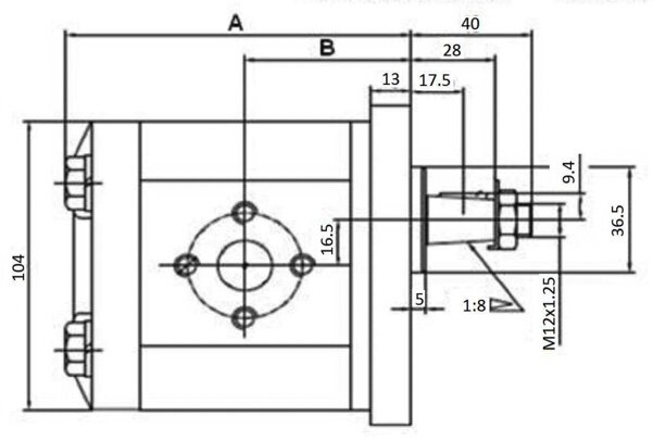 ✓ Tandwielpomp ✓ 30 cc ✓ Links ✓ 1:8 conische as