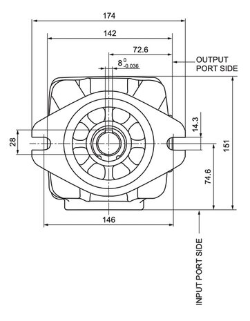 32,7 cc tandwielpomp rechts 25mm as met spiebaan