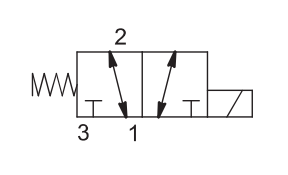Deze voorgestuurde NC klep is volledig open van 1 naar 2 omgekeerd. En in geactiveerde toestand zijn de poorten richting beide zijden gesloten.