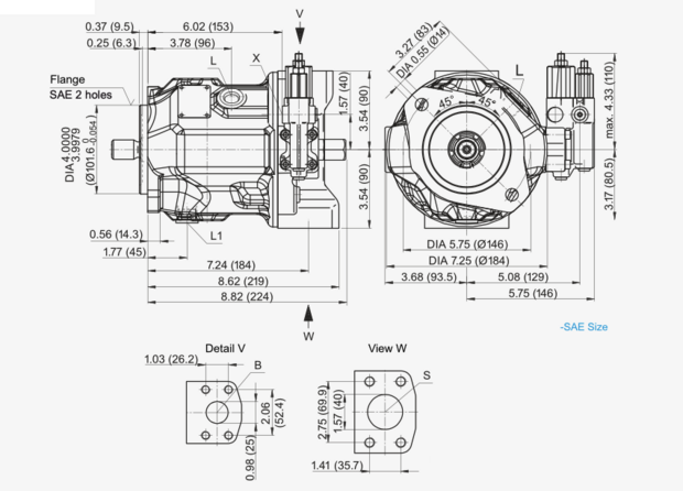 45 DFR variabele plunjerpomp rechts - open circuit - 45cc - 280 bar