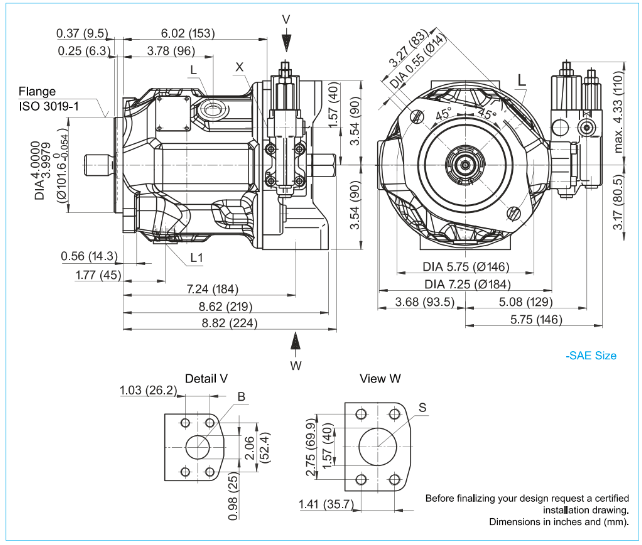 45 DFLR plunjerpomp rechts - open circuit - 45cc - 280 bar met doorbouw