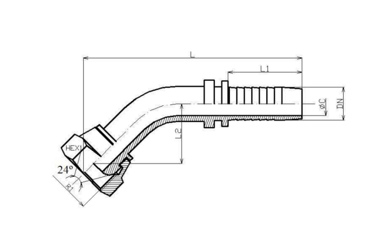 5/16" DN perskoppeling haaks 45° 12L M18x1,5 met wartel 24°/60° conus