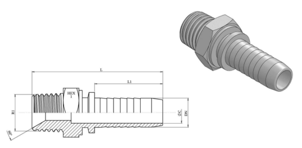 Deze 5/8" DN perskoppeling met buitendraad 3/4" BSPT is ontworpen voor het verbinden van hydrauliekslangen binnen uiteenlopende installaties. Het onderdeel biedt een betrouwbare aansluiting zonder onnodig gedoe en draagt bij aan een stabiele werking van jouw hydraulisch systeem.