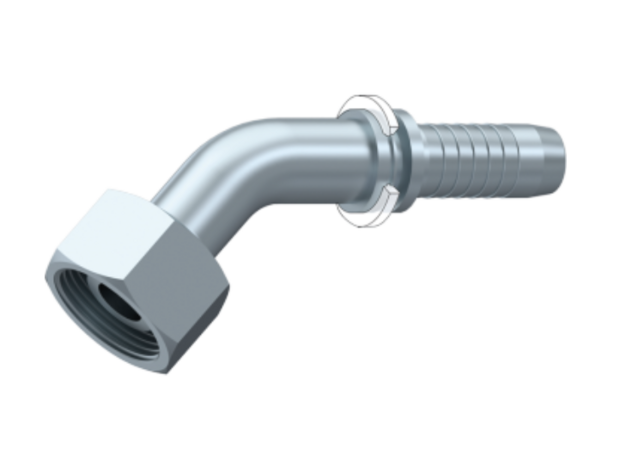 5/8" DN perskoppeling haaks 45° 18L M26x1,5 met wartel 24°/60° conus