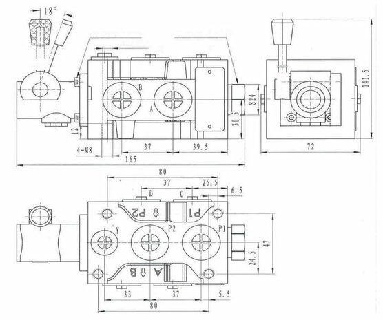 ✓ 6/2 keuze ventiel ✓ Handbediend ✓ 1 sectie ✓ 50 L/min ✓ 200 bar ✓ 1/2" BSP
