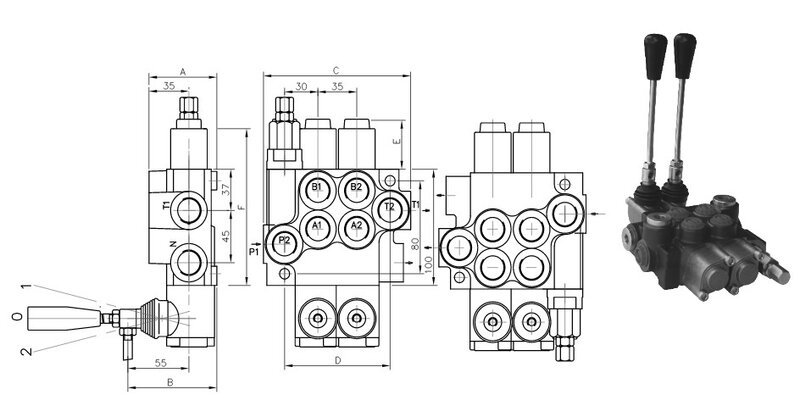 ✓ 4/3 Stuurventiel ✓ Handbediend ✓ 6 sectie ✓ 40 L/min ✓ 320 bar ✓ 1/2"