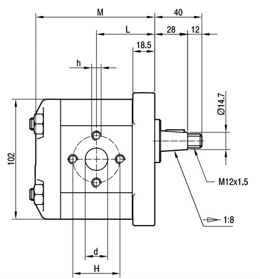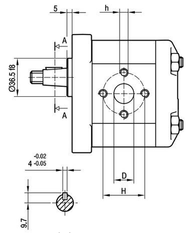 8,3 cc Marzocchi tandwielpomp rechts met 1:8 conische as