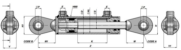 Dubbelwerkende cilinder 60x35x1000mm met kogelgewricht