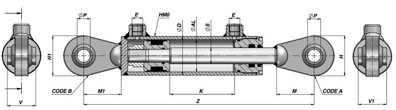 Dubbelwerkende cilinder 60x35x600mm met kogelgewricht