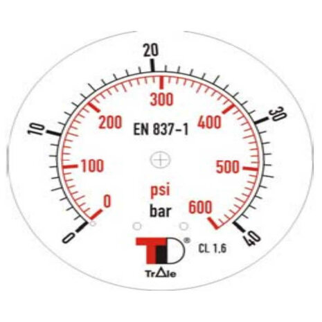 Manometer met achter aansluiting 100 mm, inbouw, gevuld met glycerine, 1/2" BSP, 0-40 bar