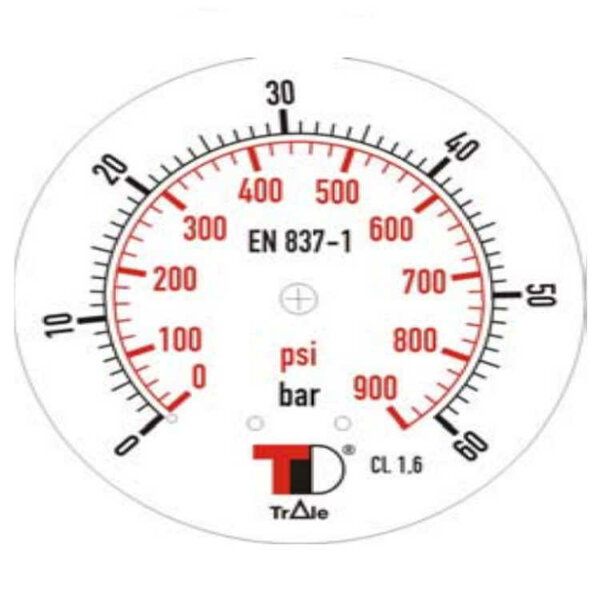 Manometer met achter aansluiting 100 mm, inbouw, gevuld met glycerine, 1/4" BSP, 0-60 bar