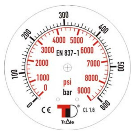 Manometer met onder aansluiting 100 mm, gevuld met glycerine, 1/2" BSP, 0-600 bar