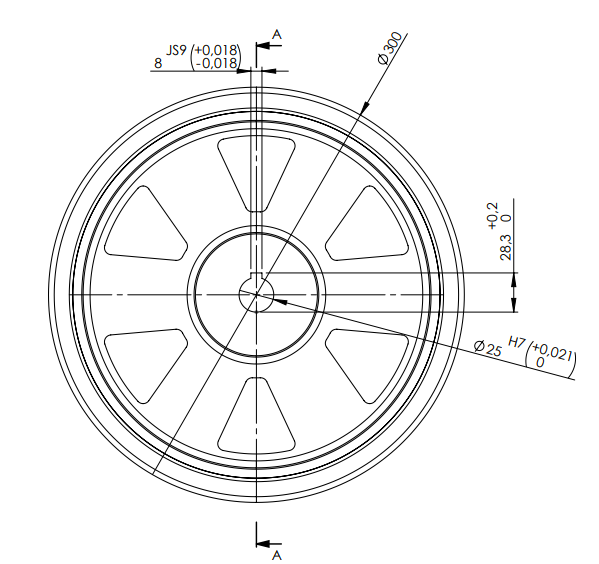 Aandrijfwiel Ø300mm asgat Ø25mm voor wielmotoren