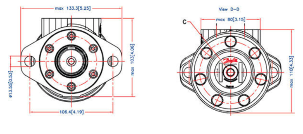 De Danfoss OMR 80 cc hydraulische motor met 32 mm as zet hydraulische vloeistofstroom om in een roterende beweging. Deze motor biedt een betrouwbare oplossing voor diverse aandrijfbehoeften, met een focus op een constant koppel en een efficiënte werking onder verschillende belastingen.