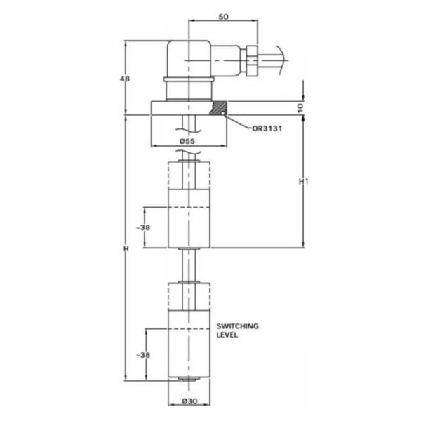 Elektrische niveaumeter, hydrauliektank, Flens, 200 mm (LEN)