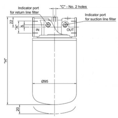 Hydrauliek MPS070 retourfilter 3/4'' BSP 25µm papier