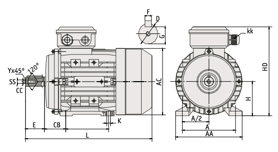✓ 3 fase ✓ IE3 Elektromotor ✓ 5,5 kW ✓ 230/400 V ✓ B3 voet ✓ B14 flens