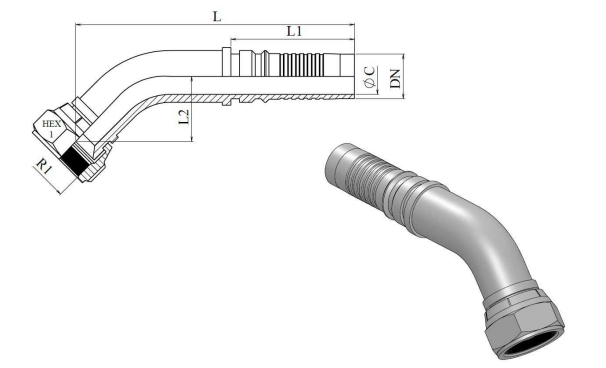 โ JIC 37ยบ โ Perskoppeling โ 1"1/2 DN โ 45ยบ