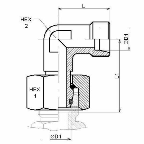 Kniekoppeling instelbaar 90ยบ 6L (M12x1,5) met o-ring