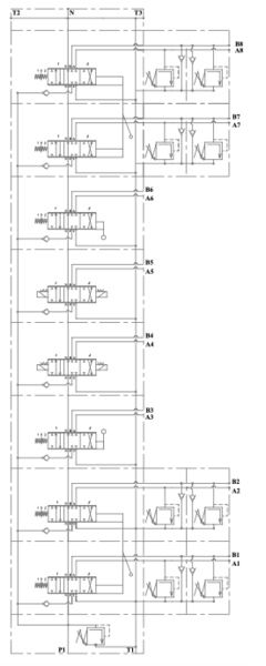 Kraanventiel 8 secties met shockvalve, overdrukventiel en nazuigklep
