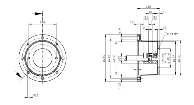 ✓ SAE-B ✓ Lantaarnstuk ✓Bouwgrootte 100/112 ✓Flens diameter 250mm