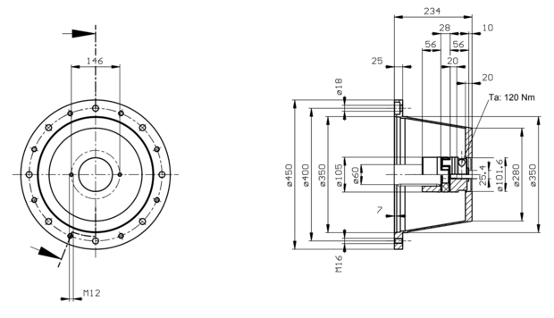 ✓ SAE-BB ✓ Lantaarnstuk ✓ Bouwgrootte 225 ✓ Flens diameter 450mm