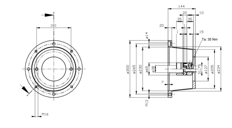 ✓ SAE-C ✓ Lantaarnstuk ✓Bouwgrootte 132 ✓Flens diameter 300mm