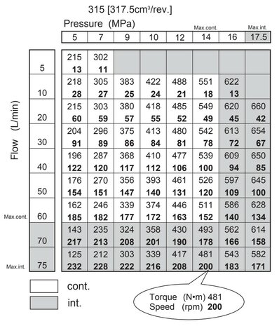 ✓ 315 cc ✓ 200 bar ✓ 25 mm as ✓ 60 L/min ✓ 560 Nm ✓ 190 rpm