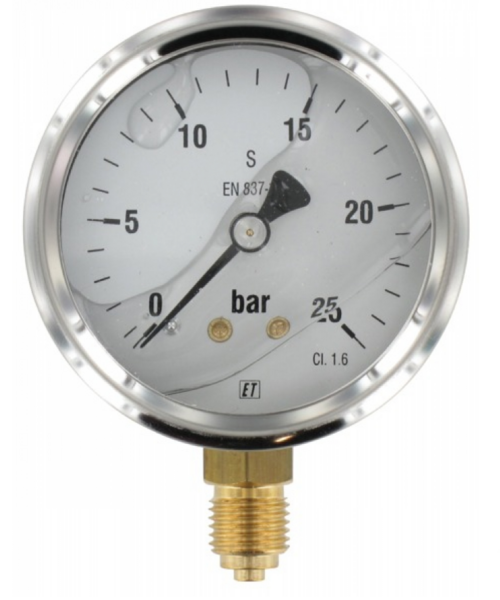 Manometer aansluiting onder 63mm gevuld met glycerine 0-25 bar