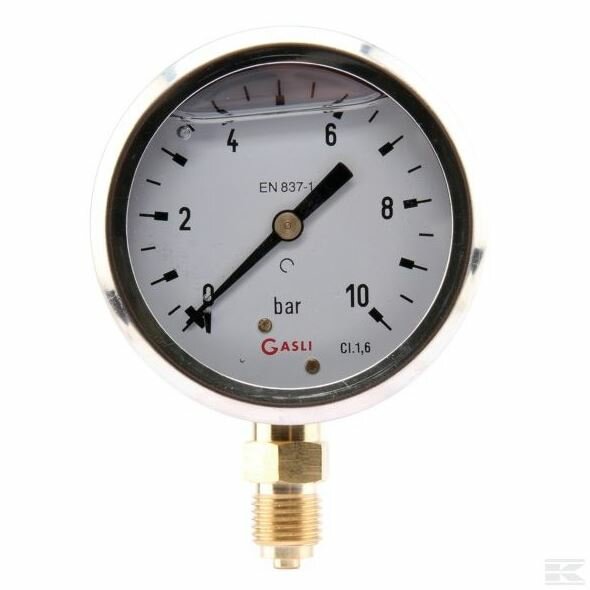Manometer aansluiting onder 63mm rvs gevuld met glycerine 0-10 bar