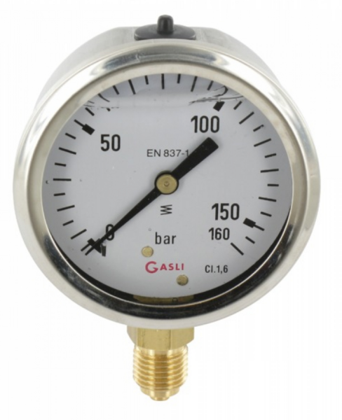 Manometer aansluiting onder 63mm rvs gevuld met glycerine 0-160 bar