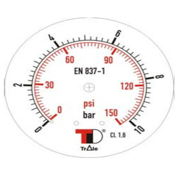 Manometer met achter aansluiting 63 mm, inbouw, gevuld met glycerine, 1/4" BSP, 0-10 bar