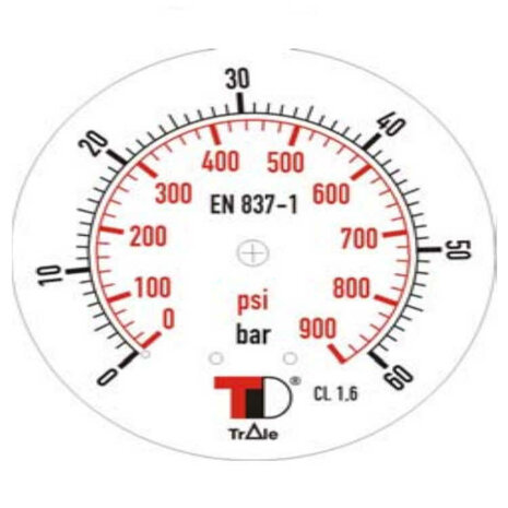 Manometer met achter aansluiting 63 mm, inbouw, gevuld met glycerine, 1/4" BSP, 0-60 bar