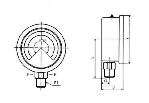✓ Met onder aansluiting ✓ 0-400 bar ✓ 1/2" NPT ✓ DN 100