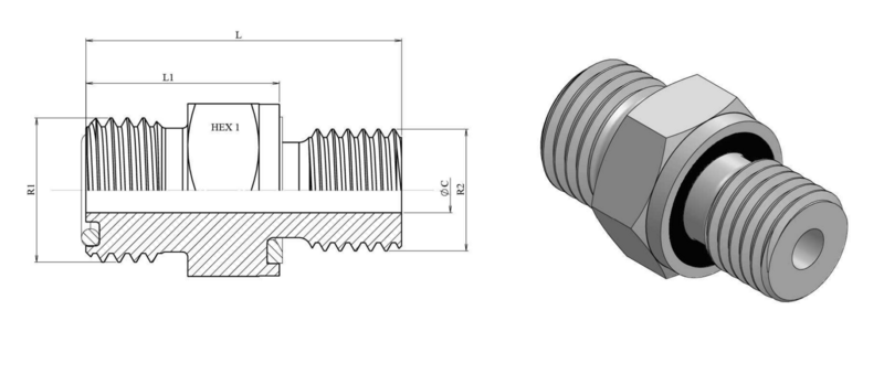 Metrische inschroefkoppeling ORFS 1"-14h male M22x1.5 male