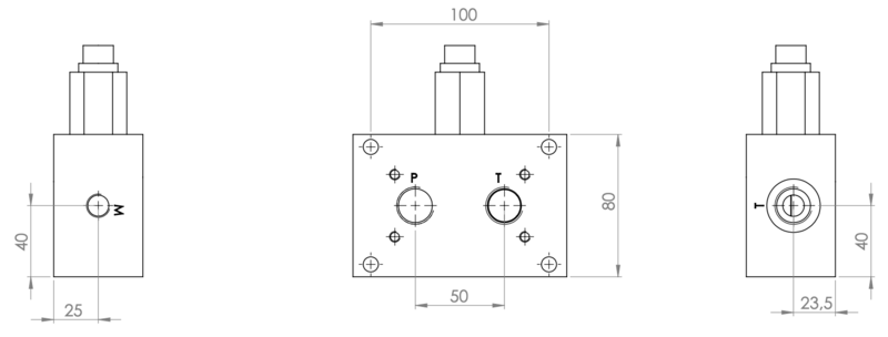 Modulair cetop basis blok met overdrukventiel & T aan de zijkant