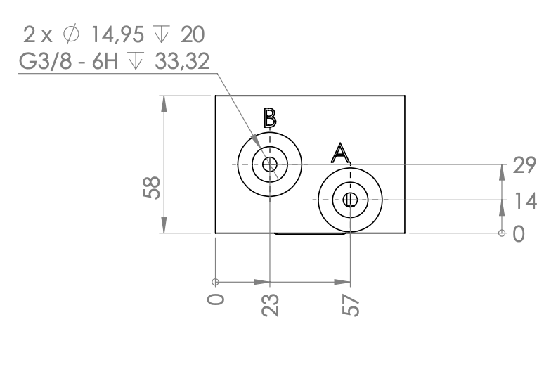 Modulair cetop NG6 blok met A-B aan zijkant