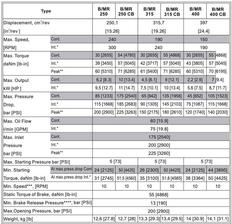 B/MR250C 250cc hydraulische motor met rem 25mm as
